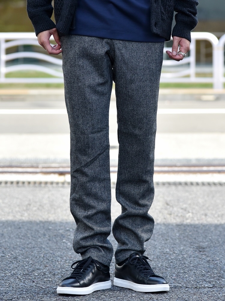 サイズ感:ヒップ部はゆとりを持たせ、裾に向かって細くなるテーパード仕様。