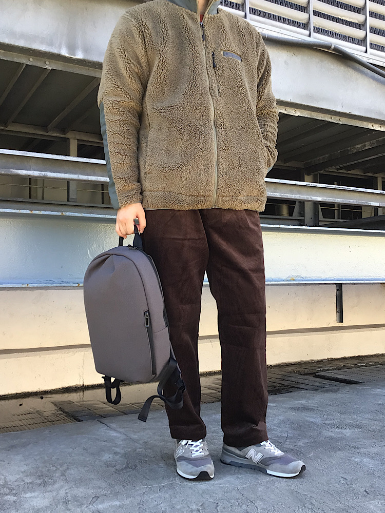 これからの寒い時期に大活躍するColumbiaのボアフリースジャケットとコーデュロイパンツを合わせてアースカラーを意識したコーディネートに!