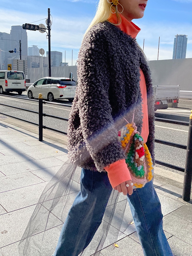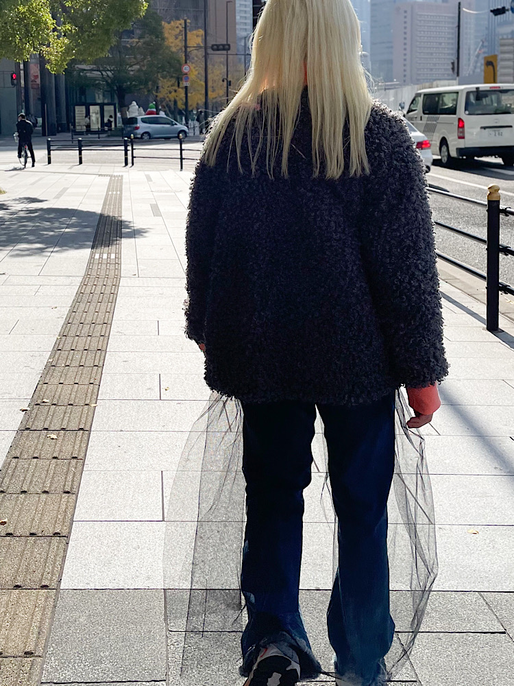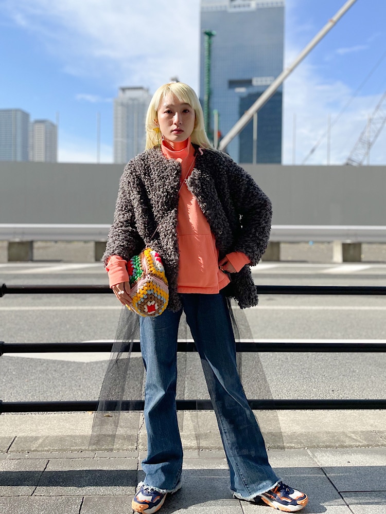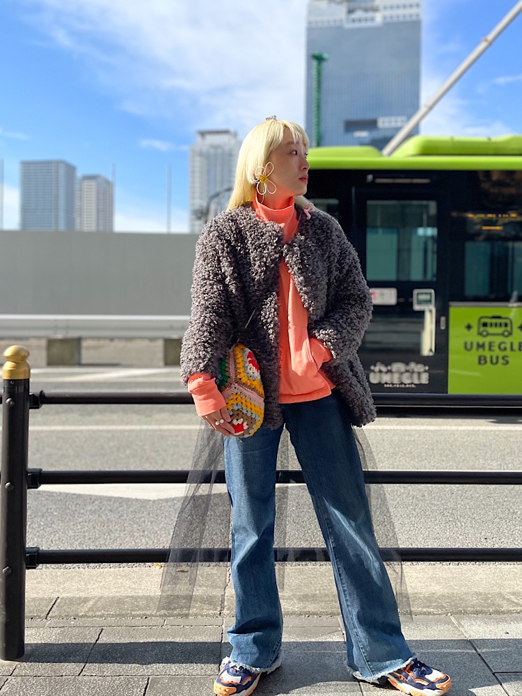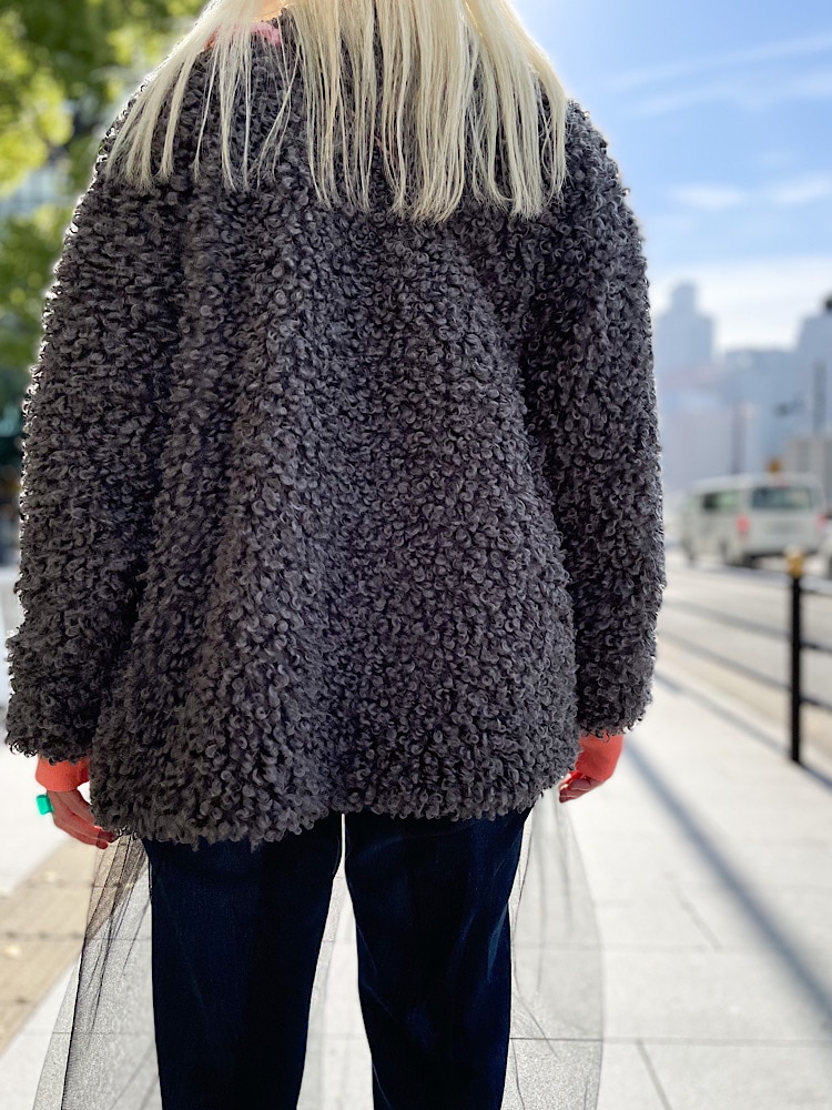 着こなしポイント:クリクリのファーコートなので、カジュアルにデニムなどと合わすのがおすすめです!
