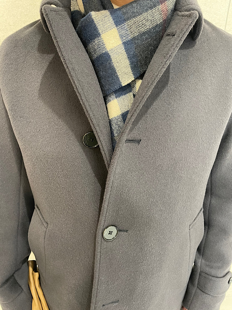 【素材感・着心地】極細のメリノウールが柔らかい肌触りです。従来のカーコートより少し短くカジュアルコーデにも使いやすいです。