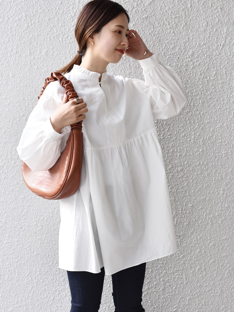 白ブラウス×デニムで、大人フェミニンスタイルに♪