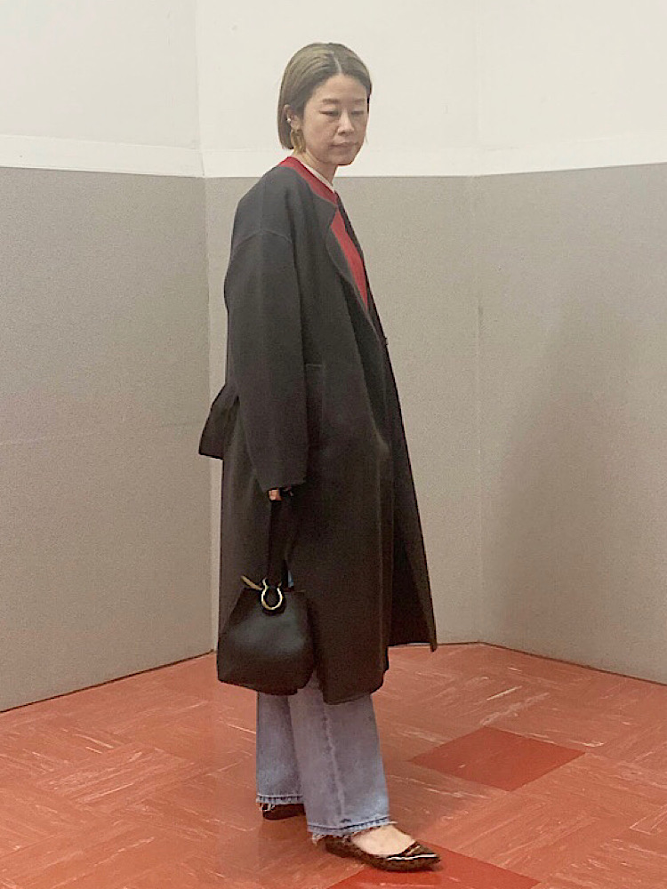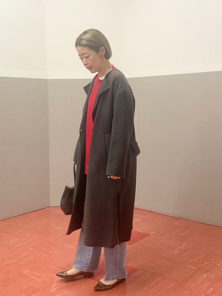 サイズ感:ゆったりとしたオーバーサイズ。ドルマンスリーブや厚手のニットも着られるほど。