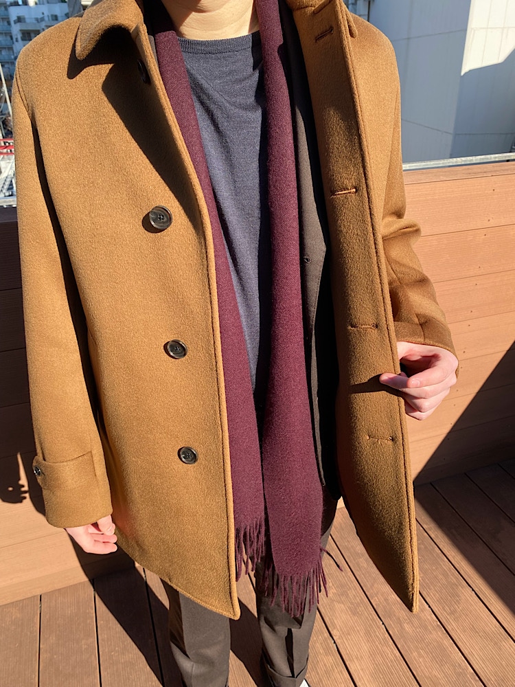 【素材感・着心地】滑らかなウールの素材感で、温かみもありつつ、軽く着やすい。