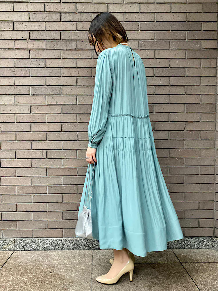 ギャザーワンピースをオケージョン仕様のコーディネートに
