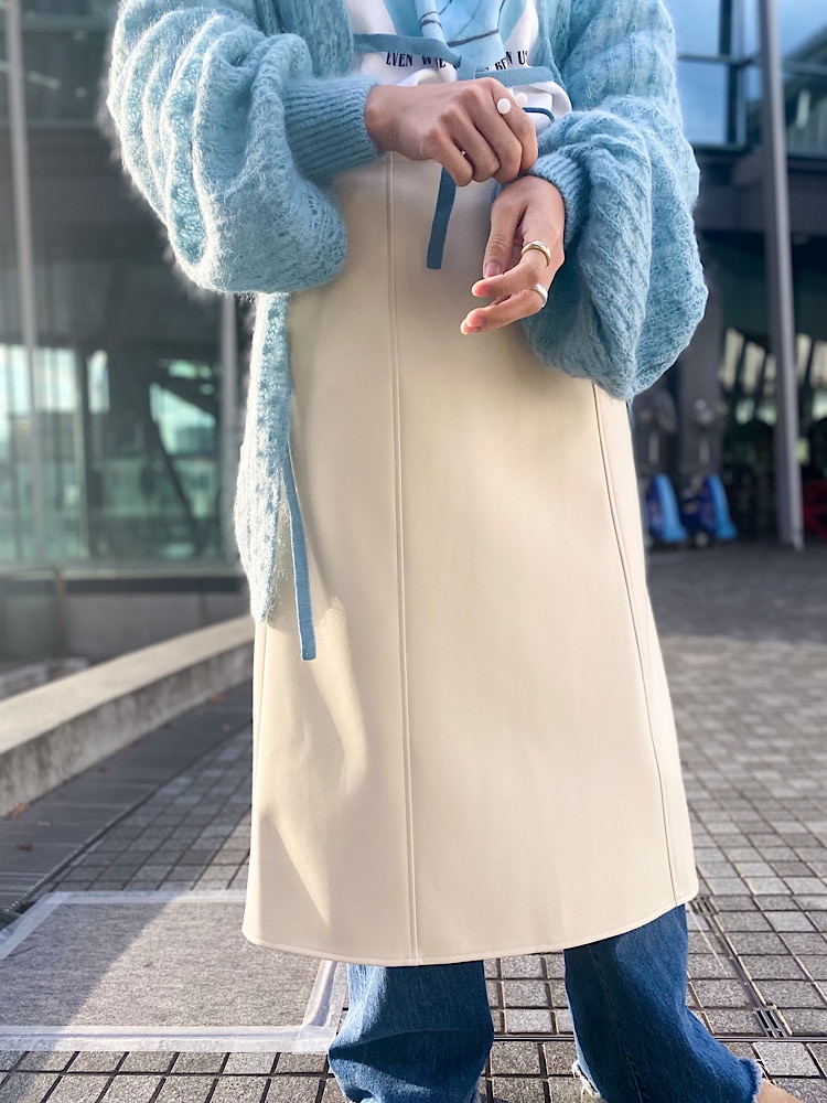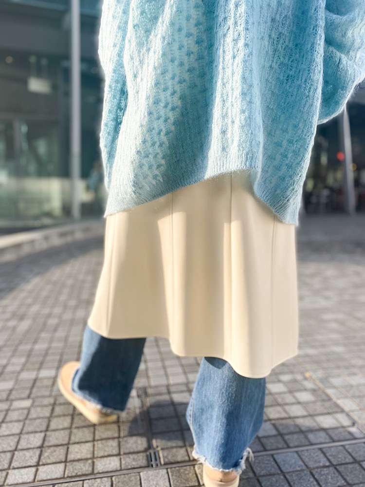 着こなしポイント: これからの時期はタイツは勿論、デニムやニットパンツとのレイヤードコーディネートもおすすめです!