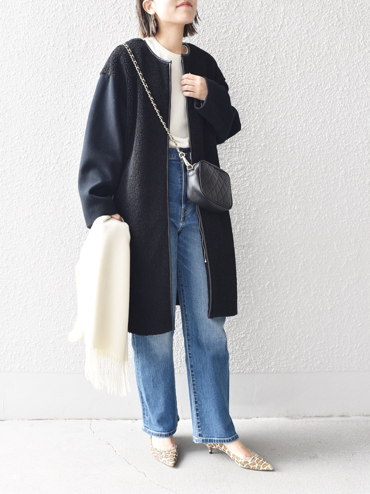 素材感:粒の細かいボア素材が大人上品な印象で着こなして頂けます。