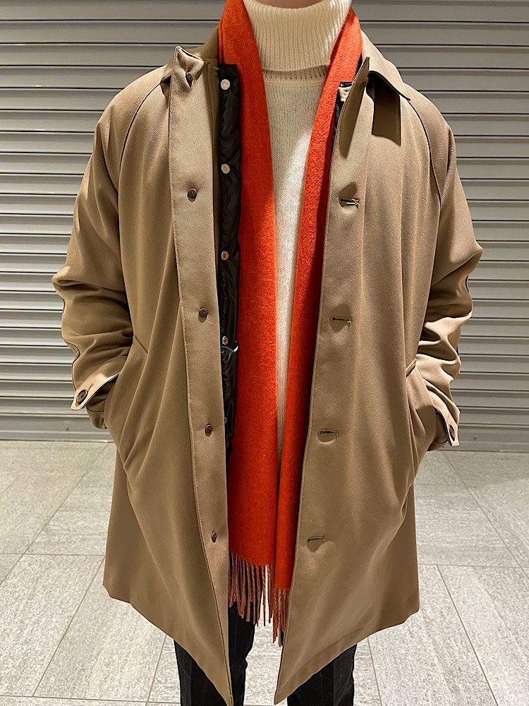 コートのカラーも落ち着いた色味でクールに決まる商品。
