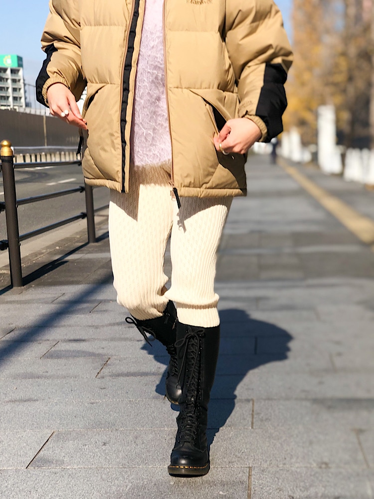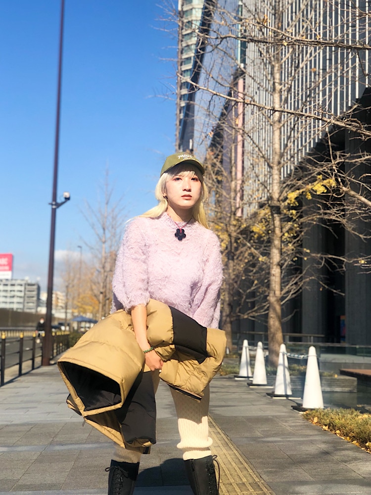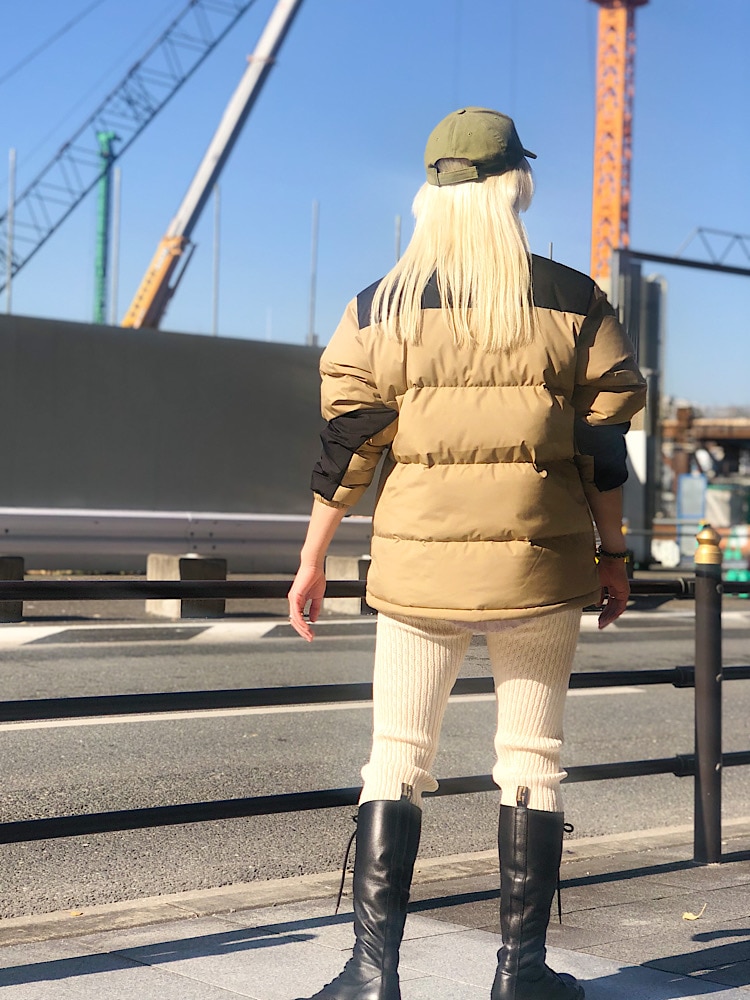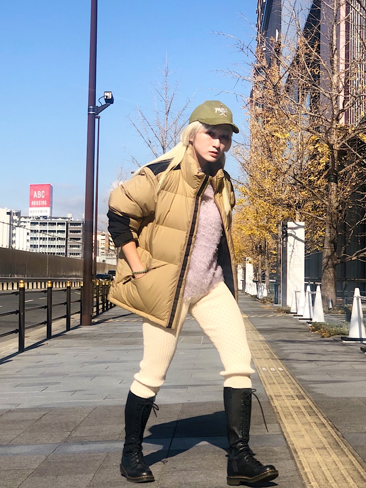 着こなしポイント: 中に肉厚なニットを着ても窮屈感がなく、とても軽いダウンになってます