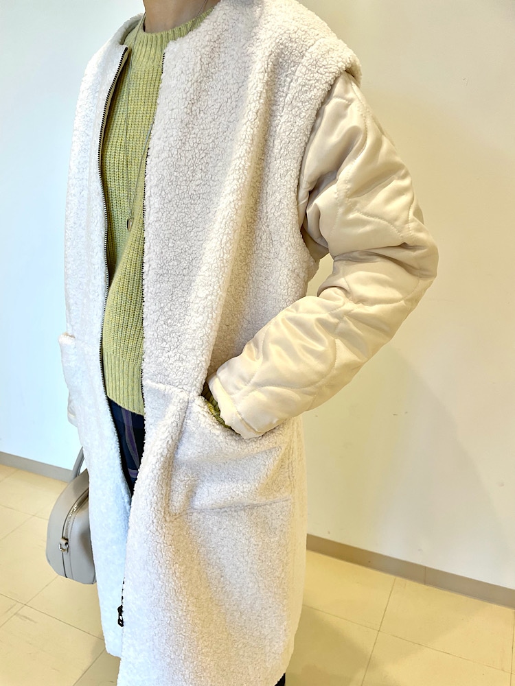 スッキリした着丈でワイドボトムとの相性◎です。