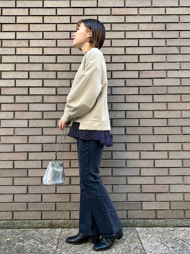 クールな印象のコーディネートの中にドット柄をチラ見せ