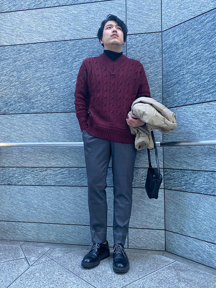 サイズ感:ミドルゲージのニットの上から着用でジャスト。