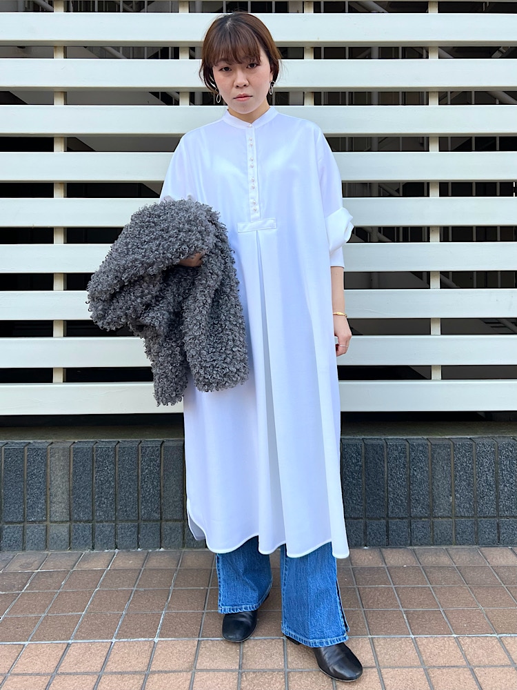 着心地:ウエストからヒップにかけて程よいフィット感があり、足のラインを拾わないソフトなフレアシルエット