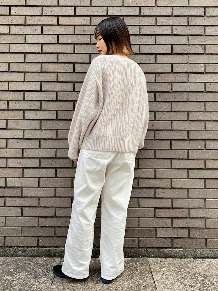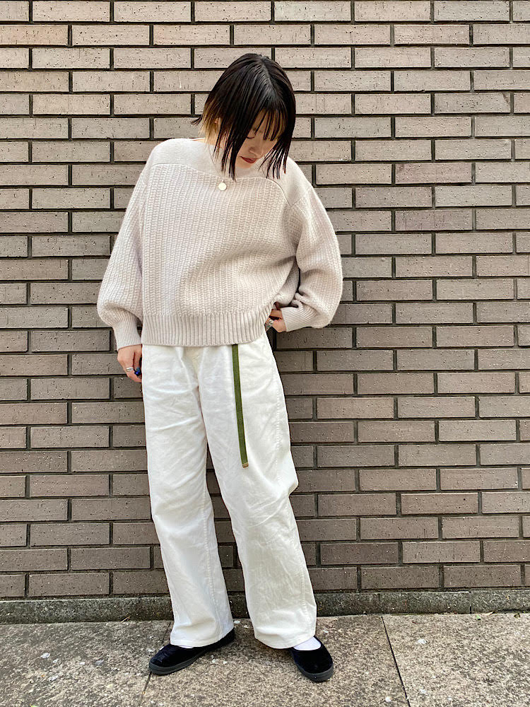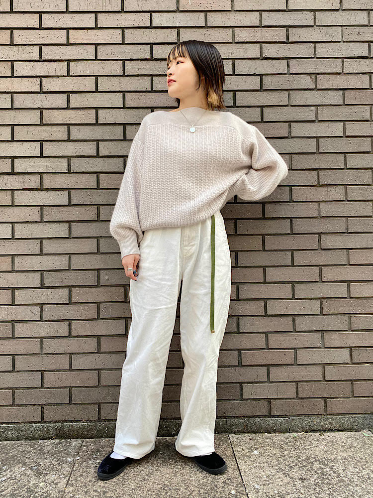 ワイドニットとワイドパンツを合わせたカジュアルスタイル