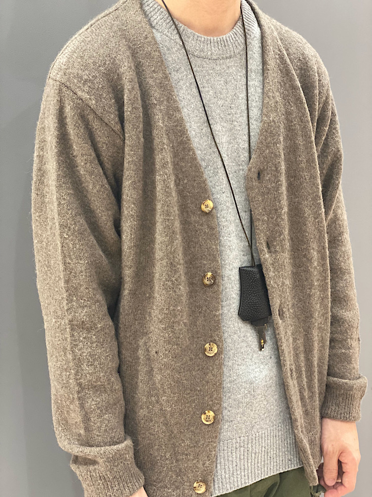【素材感・着心地】アルパカの毛が素材のニットです。ややモヘアライクな見た目ですが、柔らかさのある表情が特徴です。