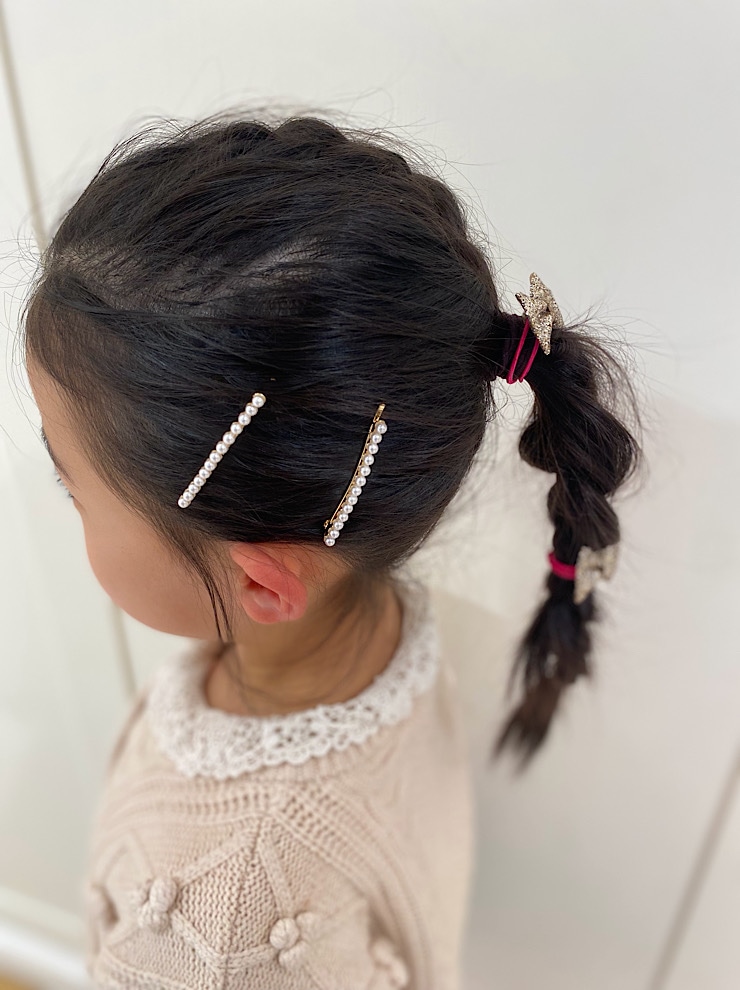 冬のホワイトコーデ🎄 ふわふわニットに合わせたスカート見えするキュロット🐰 全て洗濯可で、汚れが気になるお子様のお洋服も取り扱いが簡単なところがおすすめポイントです✨ パールのピンでヘアアレンジも🎀