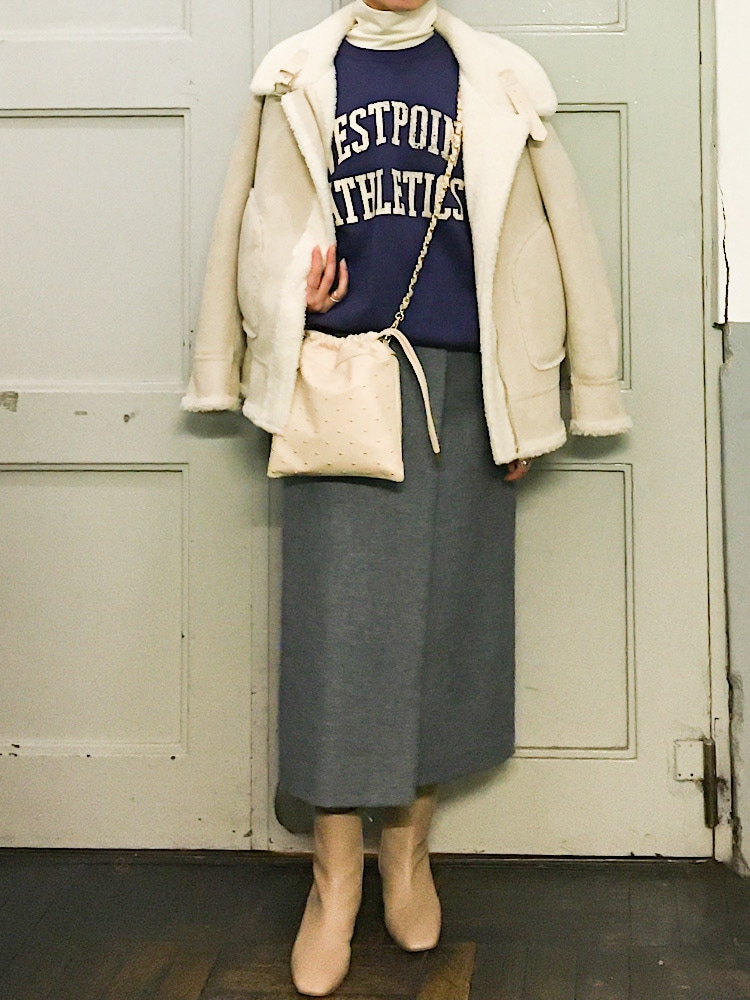 素材感・着心地:フェイクムートンですが質が良く、柔らかさと軽さがあります。