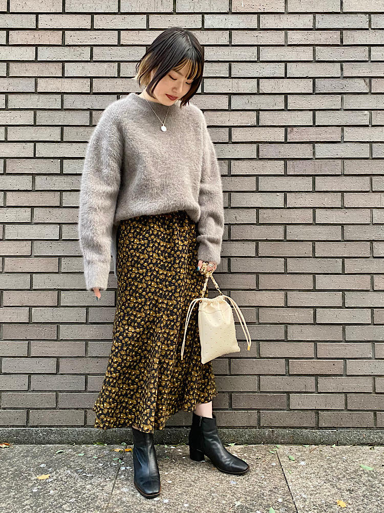 腰周りはスッキリしているのでダボっとしたニット等とも