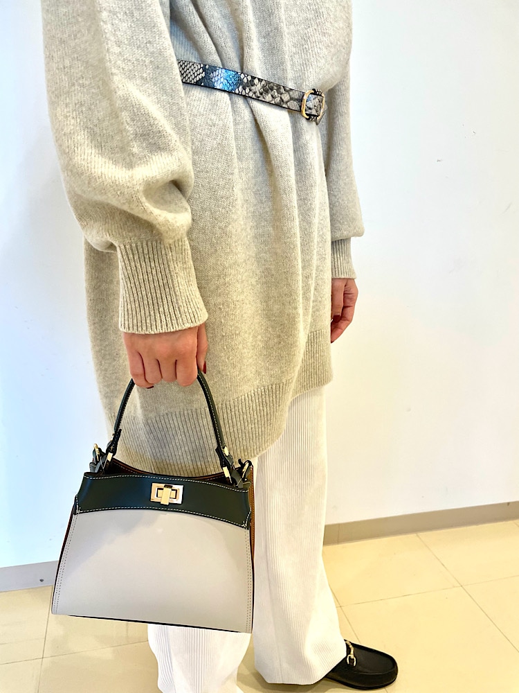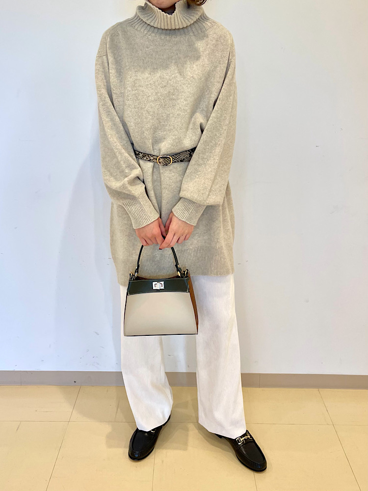 お尻がすっぽり隠れるサイズ感で安心感がありつつも女性らしく着れるシルエットです。