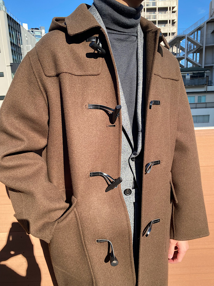 ダッフルコートのイメージからはかけ離れた軽い生地を使用しており軽快な着心地となっています。