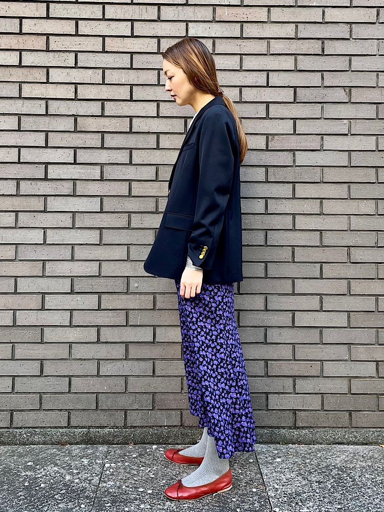 素材感・着心地:ウール素材で袖には裏地が付いています。袖や身頃は比較的余裕があるサイズ感なので、中にパーカーなどを合わせカジュアルなスタイリングもおススメです