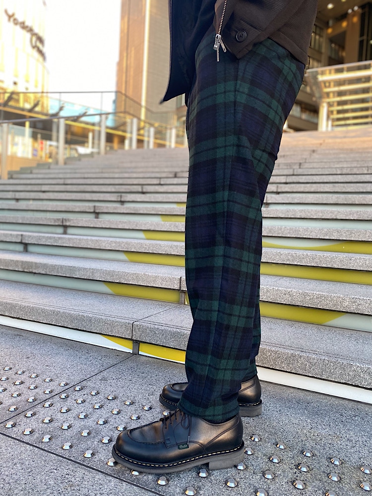 サイズ感:太もも周りはゆったりとしていますが、綺麗なテーパードシルエットで、裾周りは割と細身です。