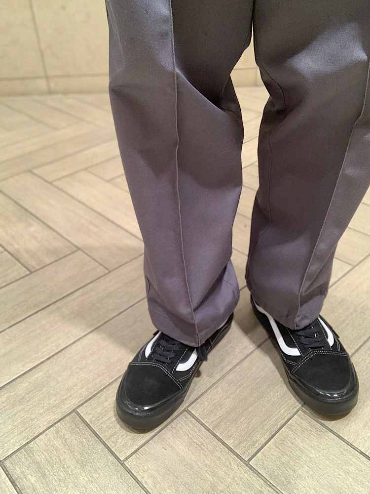 素材感:ワークパンツならではのハリ艶のある素材。