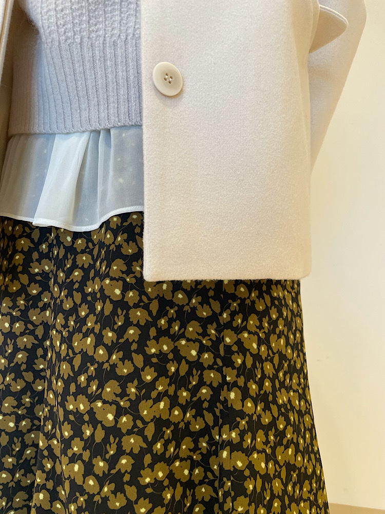 【素材感・着心地】 柔らかい肌触り。プリーツが入っているのでスッキリと見える。今の時期はレイヤードして合わせていただいて、春頃には一枚でサラッと着ていただけます。