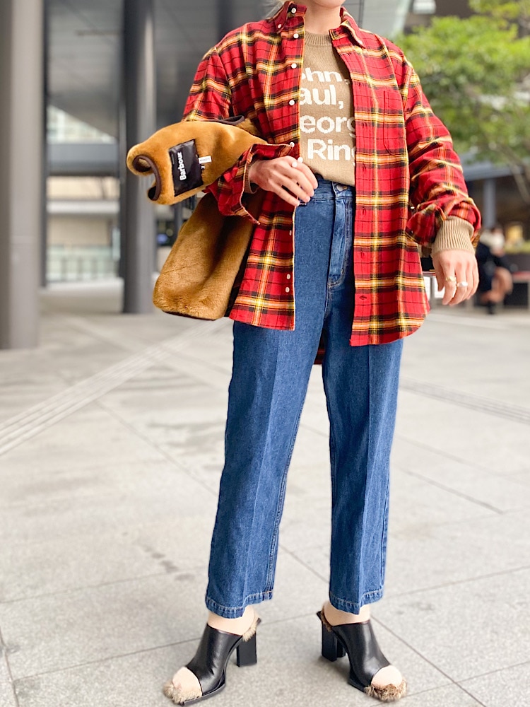 着こなしポイント: 少し着丈が長めなので、インナーは少し短めがバランスとりやすいですよ