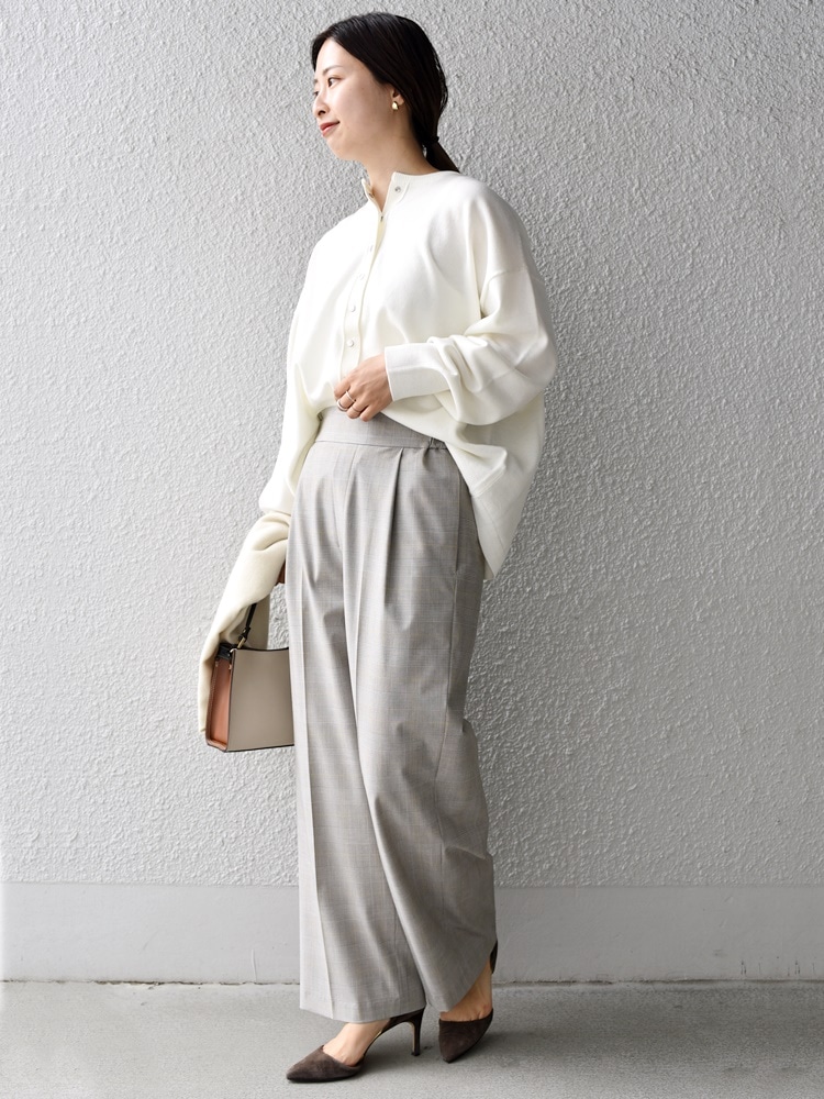 取り入れるだけでこなれ感がでるチェック柄のセミワイドパンツ。