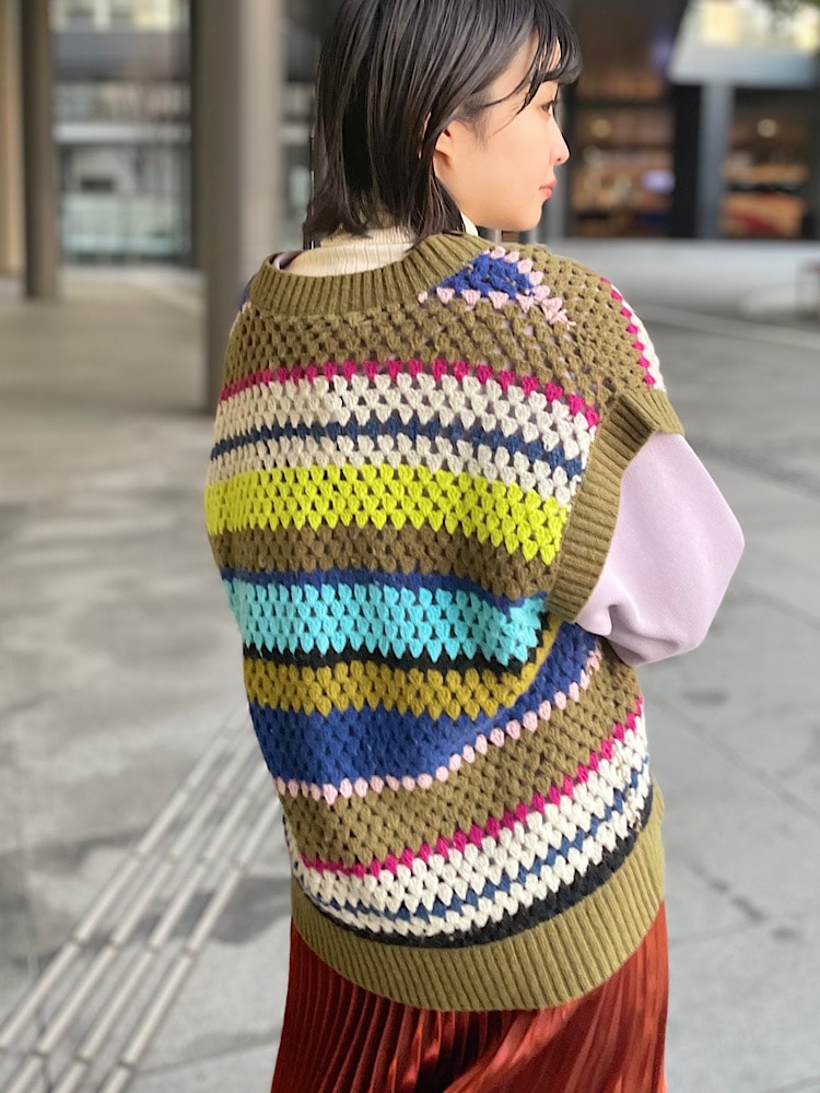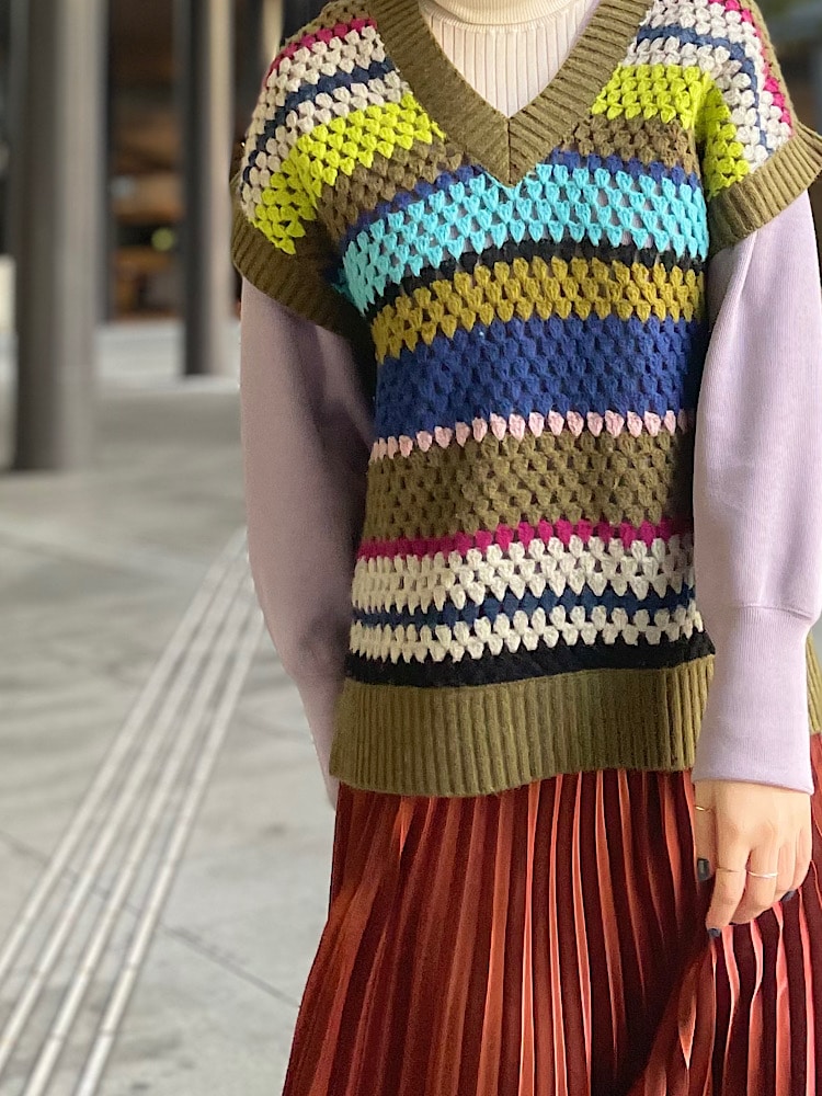 カラーのカーディガンをトップスとしてレイヤードスタイルで着用してみました