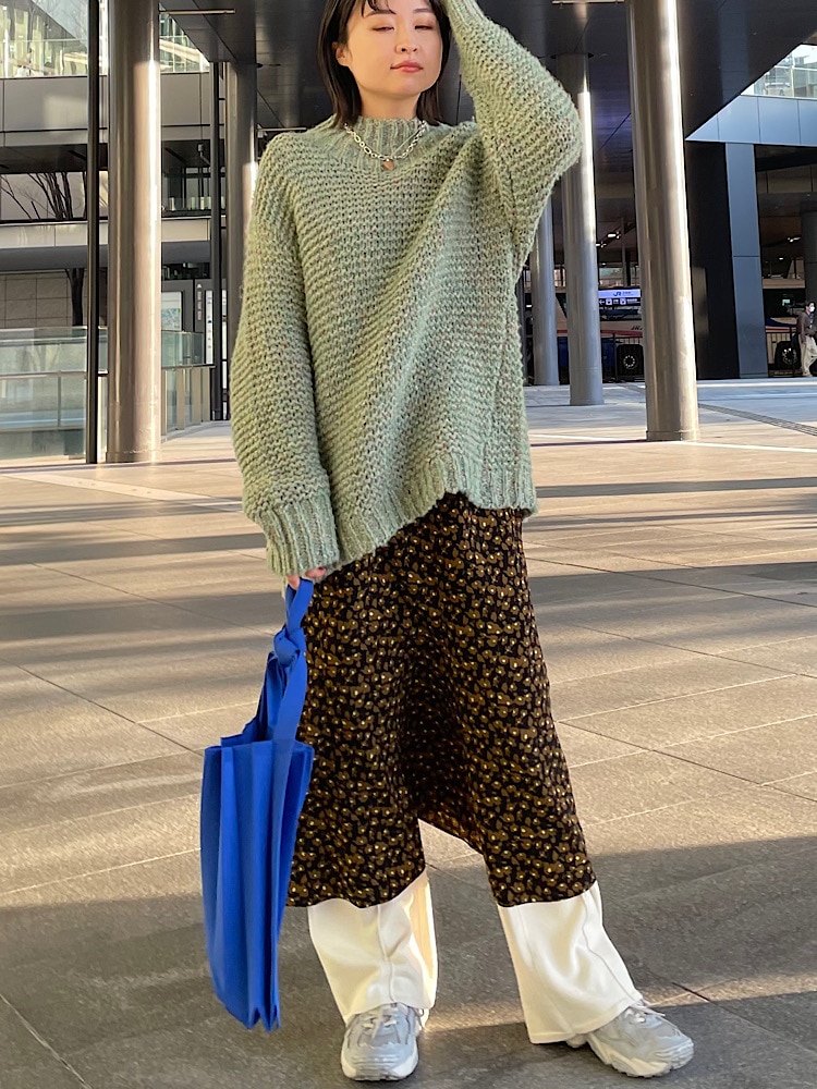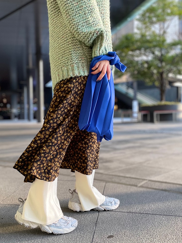 ・軽い素材感で重めのニットと合わせてもバランス取りやすい