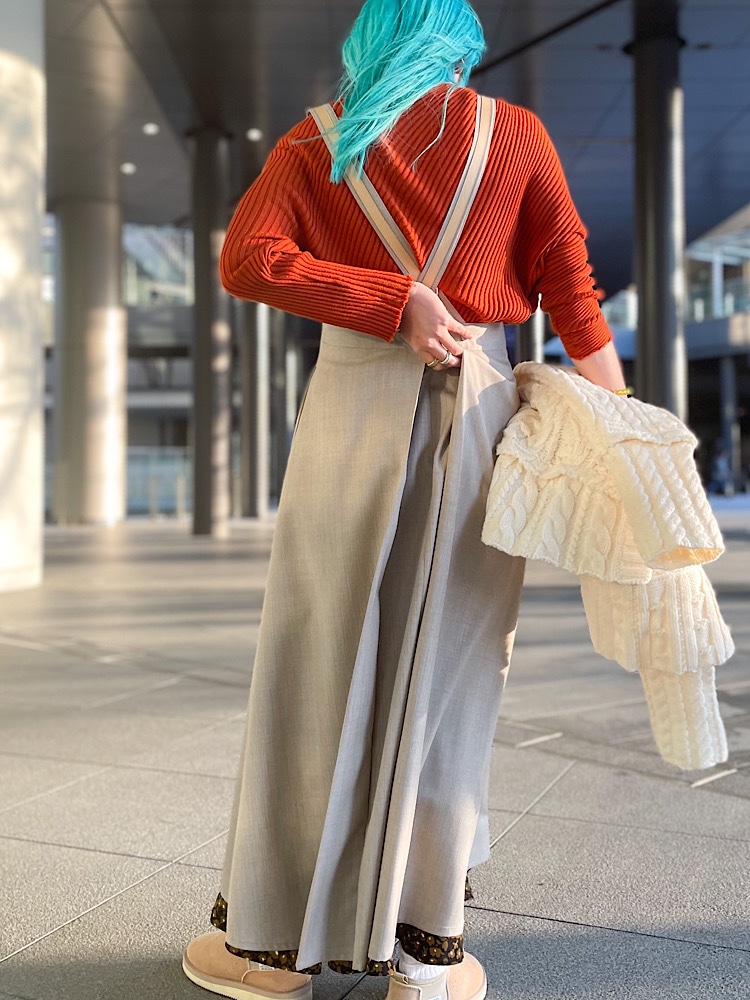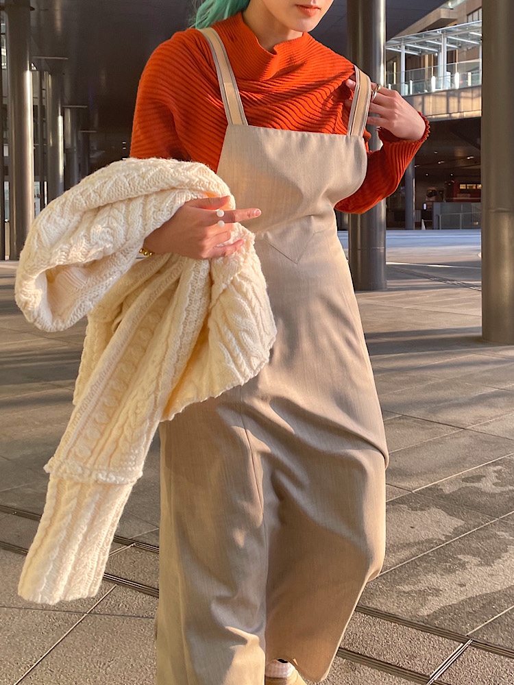 ・着こなしポイント: 少し腰で履き、ワンピースの裾からちらっと見せるのがポイントです