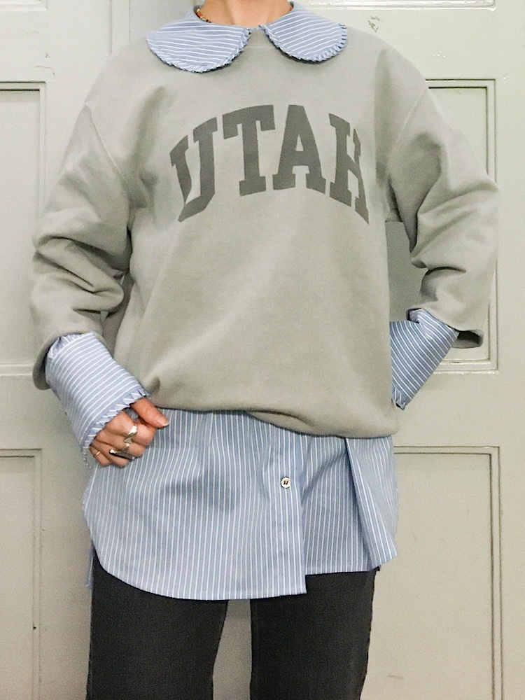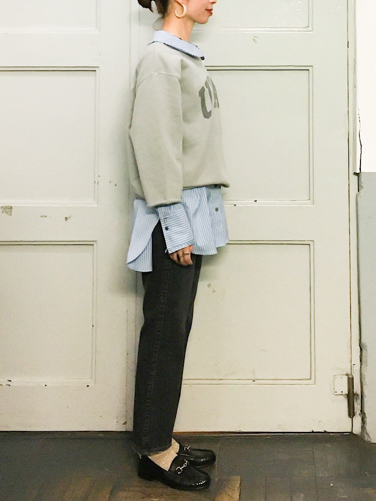 サイズ感:オーバーサイズ。お袖にボリュームがありますが重ね着してもごわつきません。