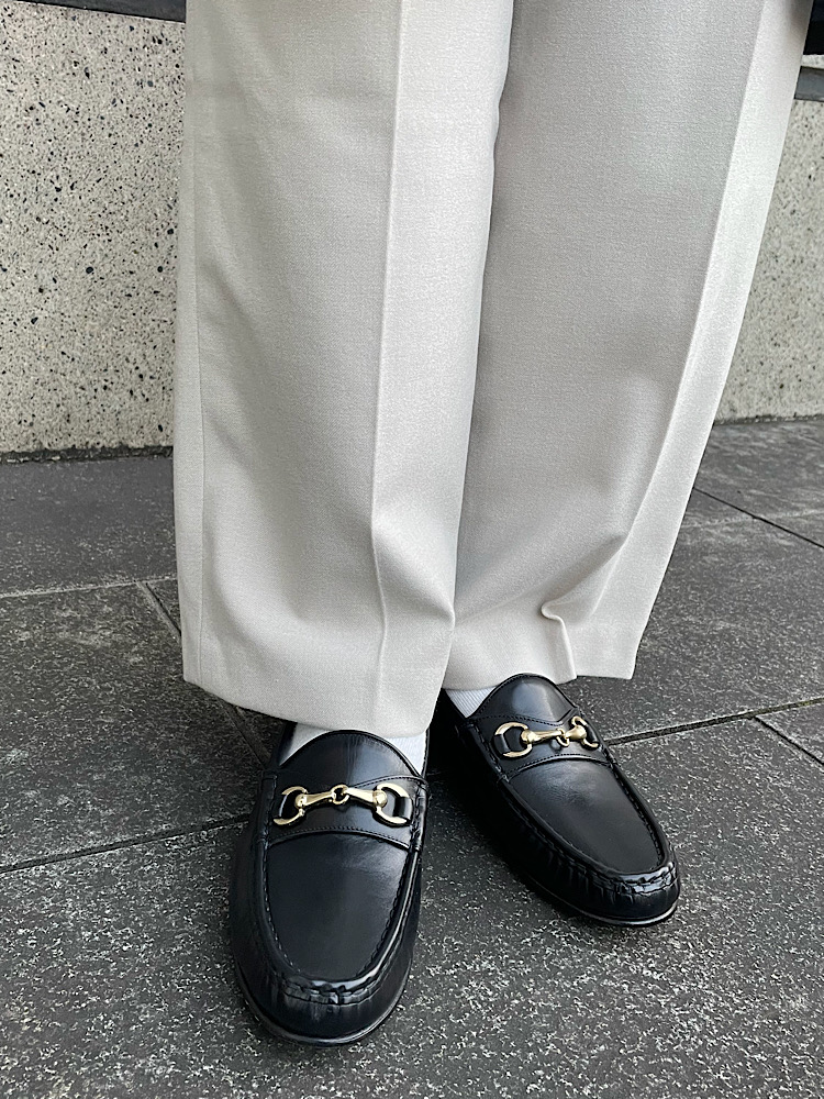 サイズ感:セミワイドですが、広がりすぎずとても丁度いいシルエットで履いていただけます。
