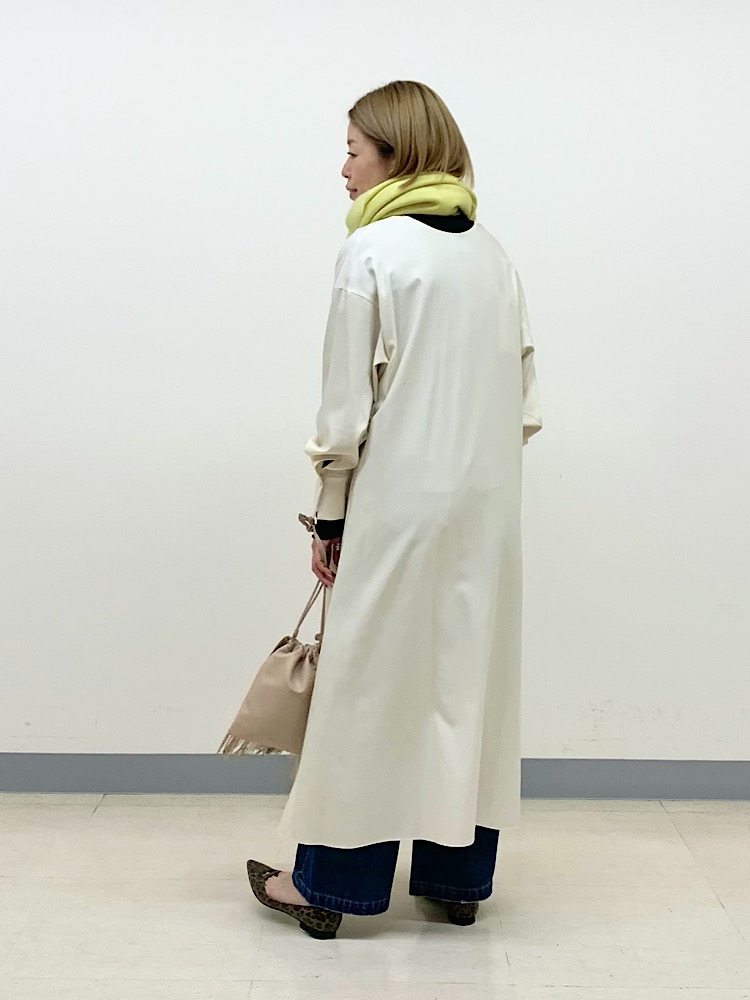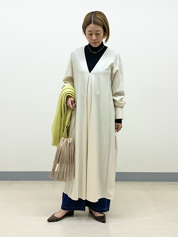 【サイズ感】ややゆったり。薄手のインナーは着られるゆとりがあり、スカート部分はフレアなので、ワイドパンツも重ねられる。