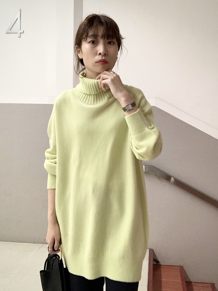 素材感・着心地:カシミヤ混で柔らかい。ヒップがしっかり隠れる長さで安心感があります。