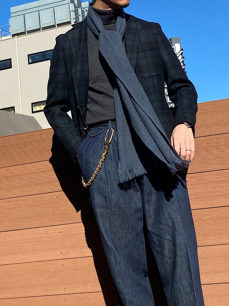 しっとりと肉感がある生地なので気温によってはアウターが無くても暖かく着用できます。