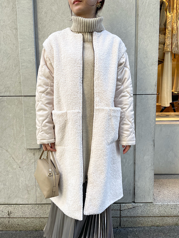 【素材感・着心地】軽い着心地。袖を外すことが出来るので、アウターとしても、ジレとしても着回し出来ます。