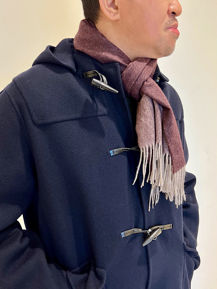 マフラーは両面色が違い濃淡のミックス感を味わえます。