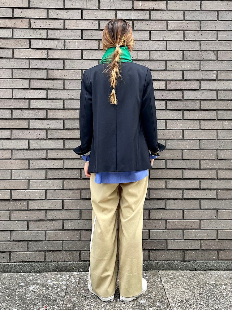 素材感・着心地:ウール素材で袖には裏地が付いています。袖や身頃は比較的余裕があるサイズ感なので、中にパーカーなどを合わせカジュアルなスタイリングも可愛いです