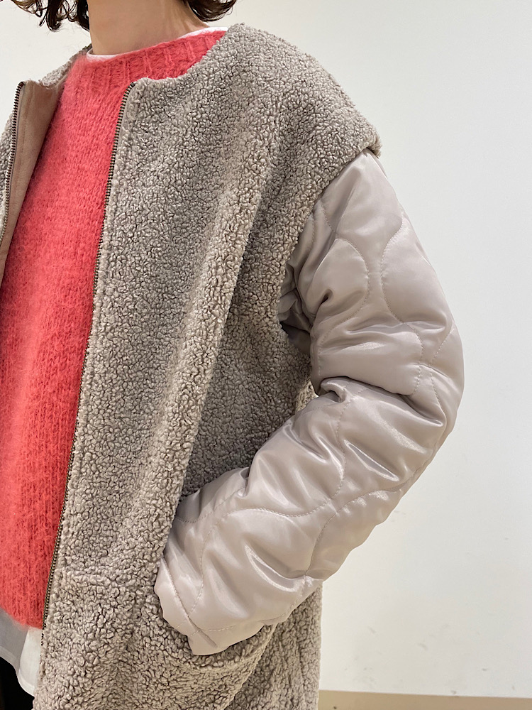 ボアとキルティングの異素材の組み合わせが可愛い。軽い着心地で楽ちん。