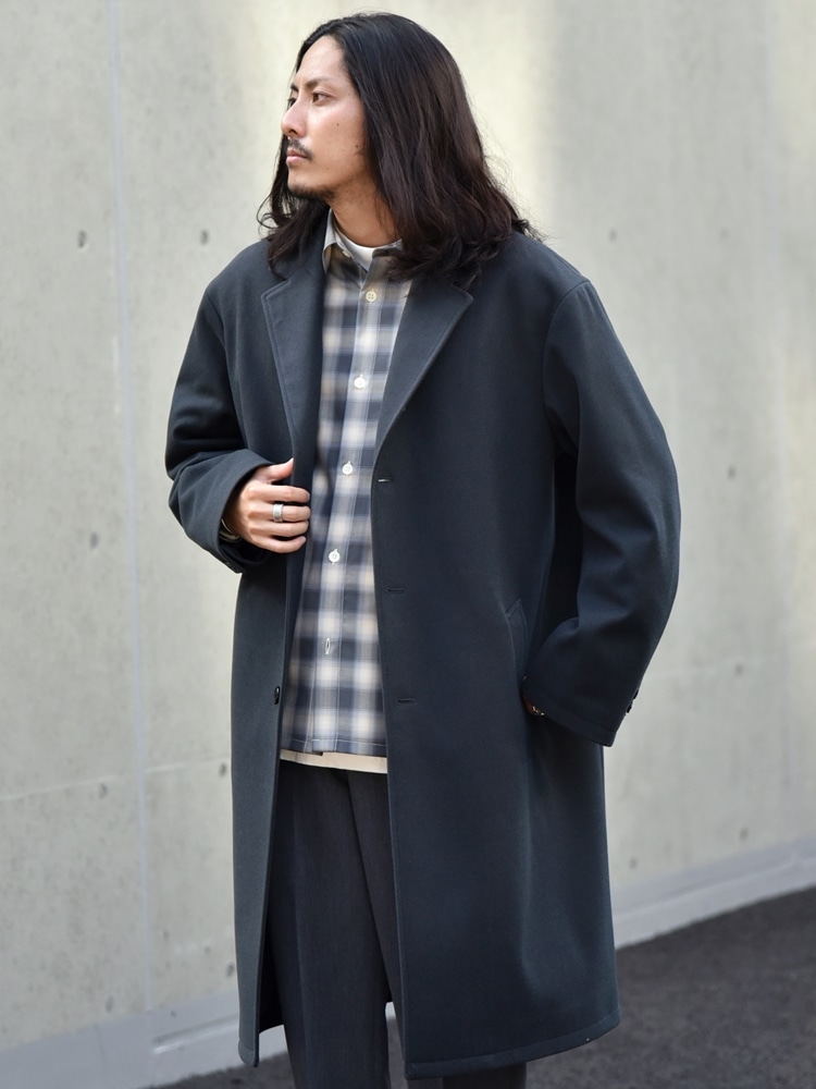 グレーカラーで纏めたリラックス感あるコートスタイル