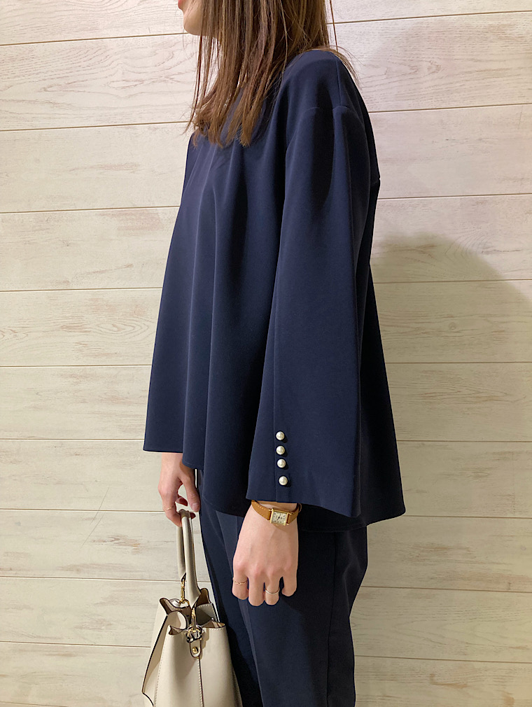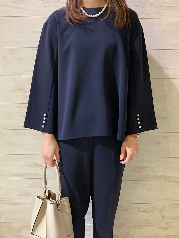 ◆ 【パールモチーフボタンクルーネックブラウス】
