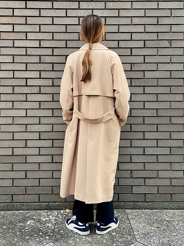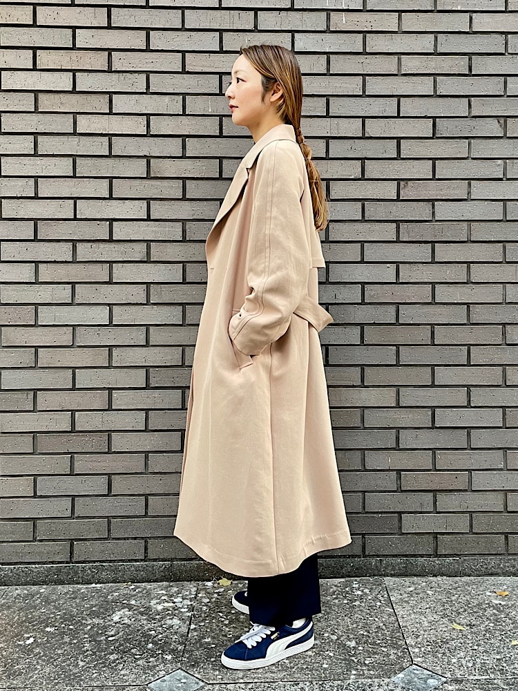 素材感・着心地:アセテート/コットンのやや厚みのある素材感。裏地は付いていませんが、肩周り、身幅共にゆったりしているので気温が低い時期は厚みのあるインナーの着用が可能です