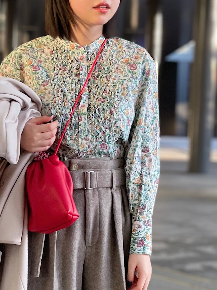 胸元のフリルデザインは甘すぎず立体感を出してくれる