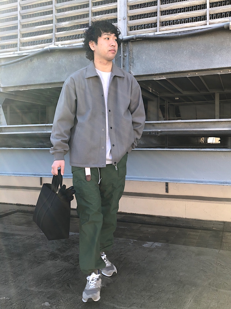 一足早く春先を意識したコーディネートでまとめてみました。古着にありそうな雰囲気のカーゴパンツは裾を絞って履くこともできるので、シルエットはお好みで楽しんでいただけます!