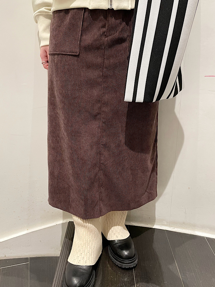 商品紹介:細リブなのでコーデュロイの中でも重たくみえずらくスッキリとしたシルエットで着ていただけます。光沢感が程よくあるのでコットンやニット素材とも相性がいいです。