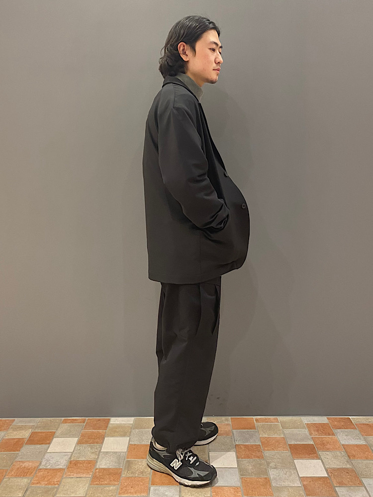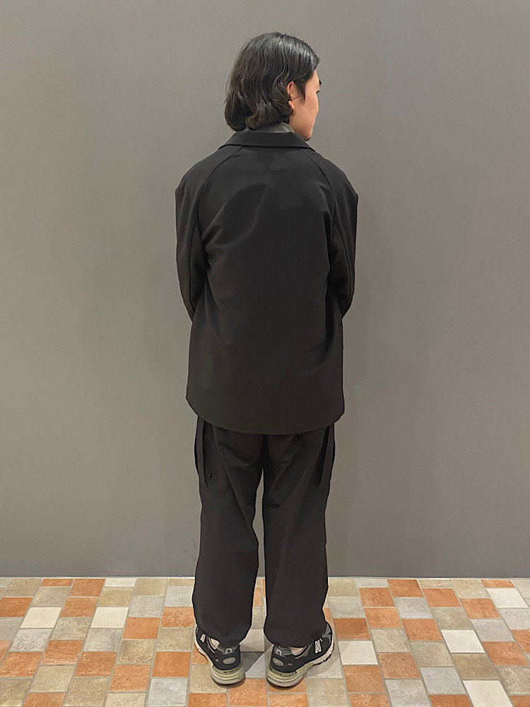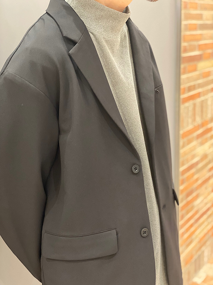 【素材感・着心地】ポリウレタン混のポリエステルです。機能素材を使ったジャケットで、ゆとりある今っぽいサイズ感です。ポケットも多く、収納力もあります。