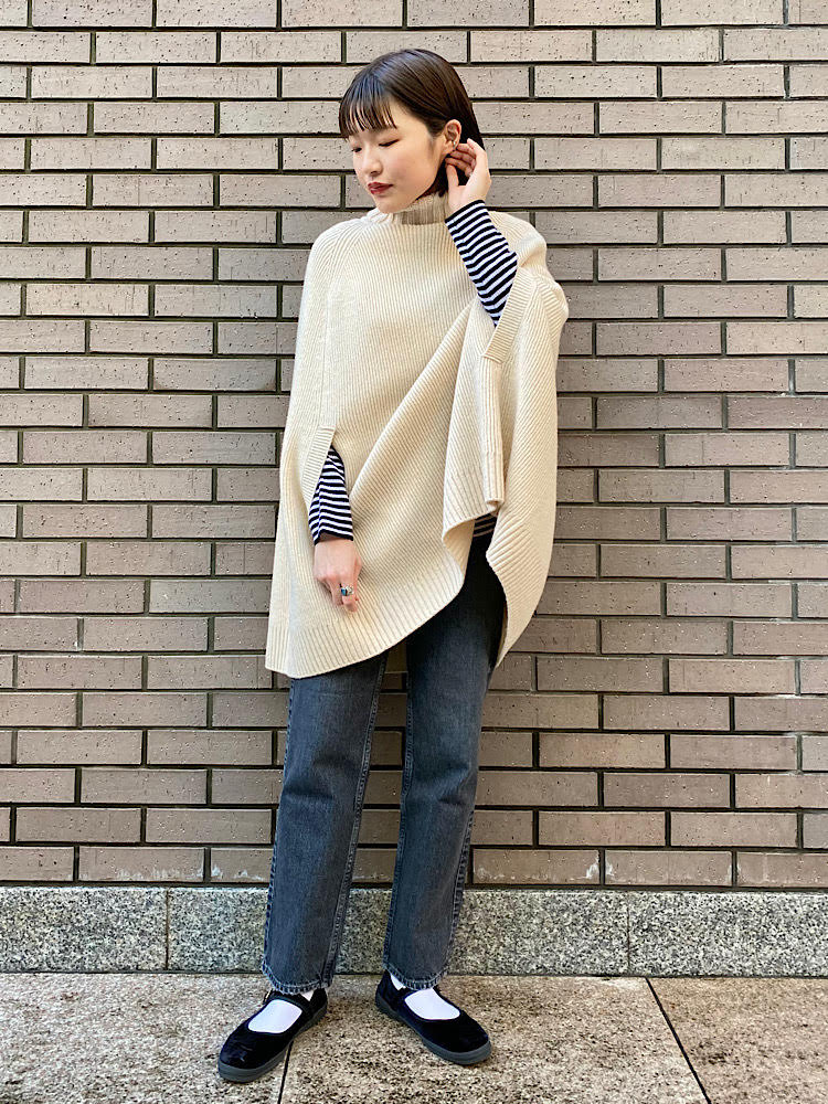 SLOANEのポンチョを主役にしたモノトーンコーデ