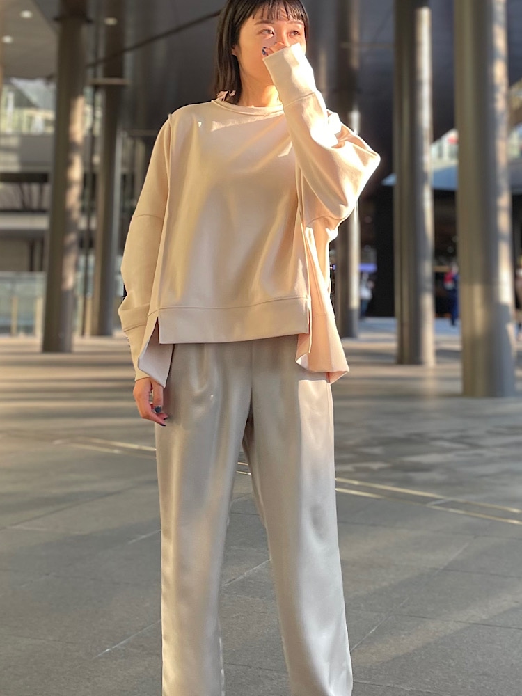 冬のサテンパンツもモードな印象でとってもおすすめ!